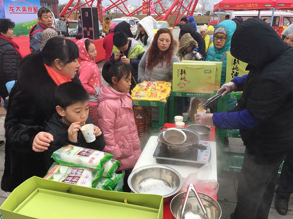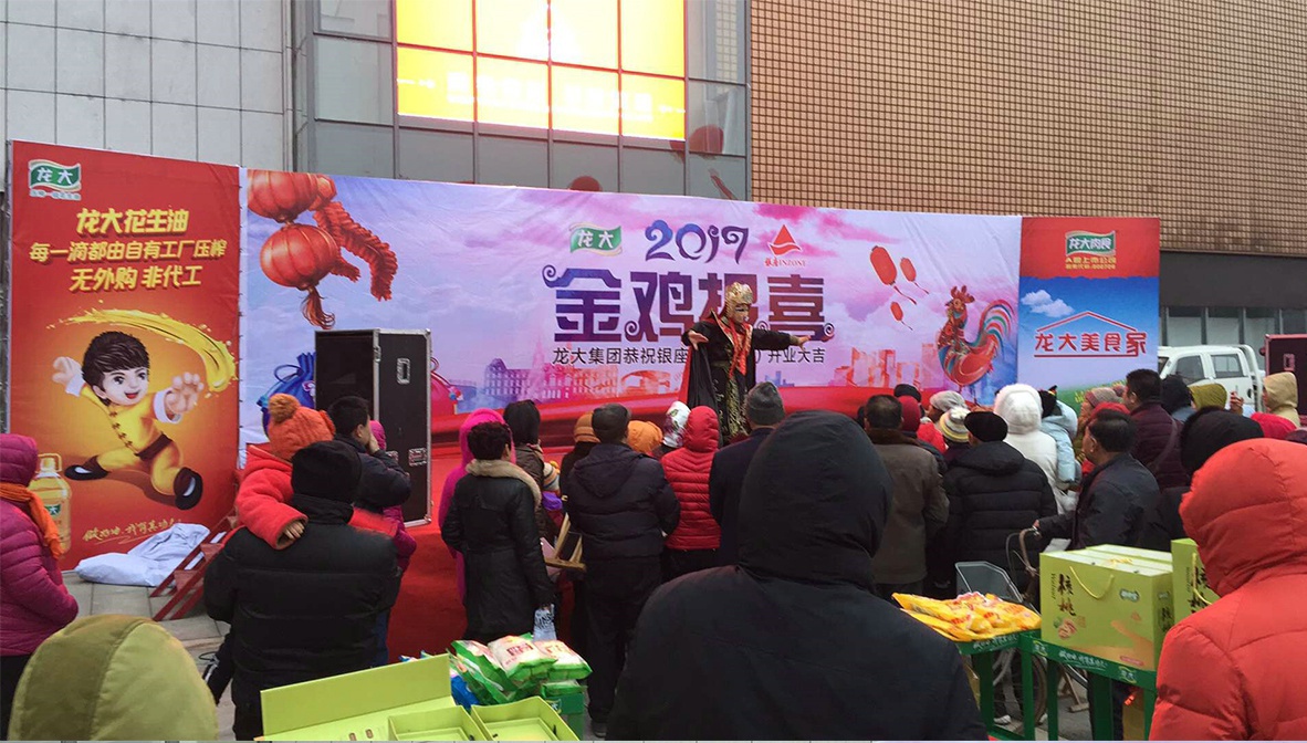 1月7日—9日,银座莱阳店门前广场喜气洋洋。AG恒峰集团组织旗下植物油、肉食品两大内贸产品进行为期3天的路演,为银座莱阳店开业助力。
