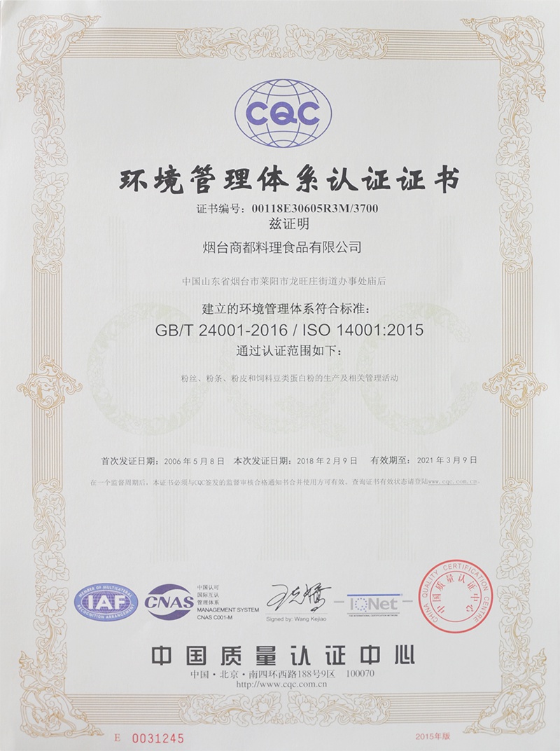 近日,CQC中国质量认证中心山东评审中心评审组在AG恒峰食品工业园对烟台商都料理食品有限公司的环境管理体系进行验收。