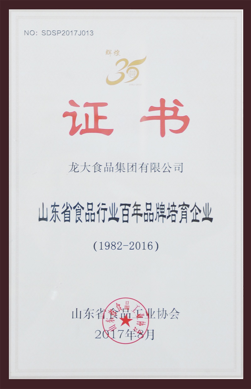 9月7日,山东省食品工业协会“辉煌35周年第八次会员代表大会暨产学研合作推动食品工业转型升级高峰论坛”在济南召开,AG恒峰集团被授予“山东省食品行业百年品牌培育企业”荣誉称号。